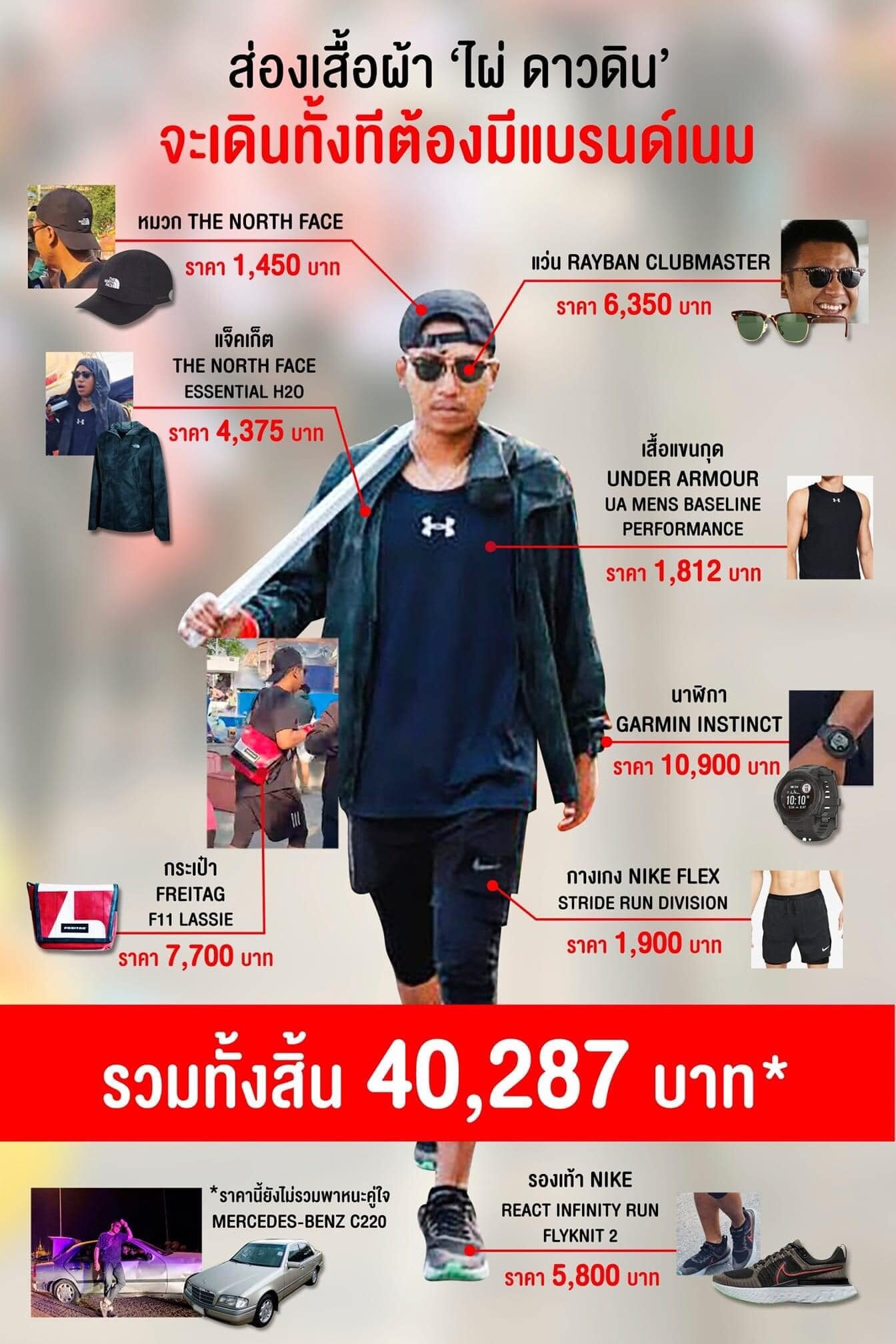 เมื่อวันที่ 23 กุมภาพันธ์ ผู้สื่อข่าวรายงานว่า แฟนเพจ God Drama ได้เผยแพร่ภาพกราฟิกของ นายจตุภัทร์ บุญภัทรรักษา หรือไผ่ ดาวดิน แกนนำราษฎรอีสาน พร้อมชี้ให้เห็นการแต่งกายของนายจตุภัทร์ ด้วยของแบรนด์เนม ขณะทำกิจกรรม “เดินทะลุฟ้า” 247.5 กิโลเมตร โดยระบุด้วยว่า